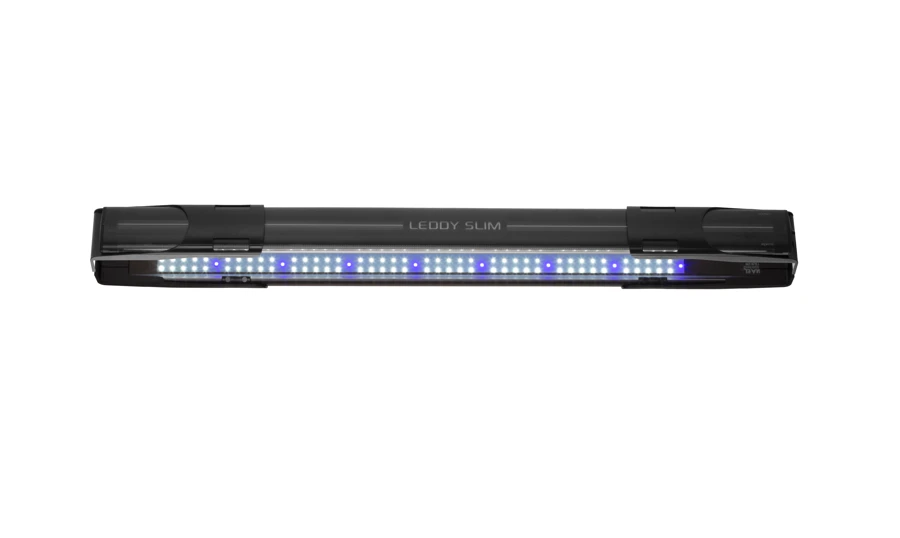 La lampe Ă led LEDDY SLIM 32W SUNNY D&N est conçue pour l’Ă©clairage des aquariums ouverts d’eau douce de 80 Ă 107 cm de longueur. Il contient des LED soigneusement sĂ©lectionnĂ©es qui assurent un Ă©clairage parfait de l’aquarium, garantissant d’excellentes conditions de vie pour ses habitants et un effet visuel unique. Sa forme plate et futuriste et sa couleur noire très tendance lui permettent de s’intĂ©grer parfaitement aux aquariums modernes et d’avoir une belle allure dans n’importe quel intĂ©rieur. En outre, il est universel – les supports d’extension permettent son installation Ă©galement sur les rĂ©servoirs de tailles non standard. Il peut Ă©galement ĂŞtre suspendu au-dessus de l’aquarium, au plafond ou Ă un cadre spĂ©cial, Ă l’aide du kit d’accessoires LEDDY SLIM HANGER.