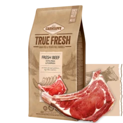 Carnilove True Fresh – Boeuf frais aux petits pois et au potiron avec de l’argousier, des coquilles d’œuf et du romarin. Recette sans céréales ni pommes de terre avec de la viande fraîche pour les chiens adultes de toutes races. Aliments complets pour chiens. Du bœuf frais avec des petits pois et du potiron.
