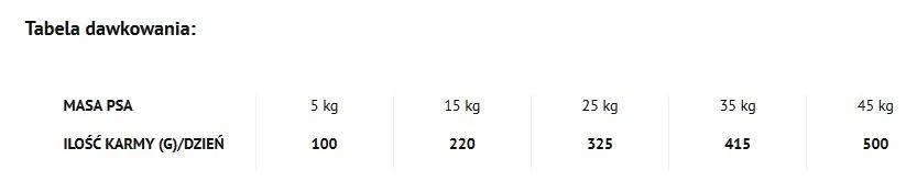 Protéines brutes – 27%, graisses brutes – 16%, cendres brutes – 7,5%, fibres brutes – 3,0%, acides gras oméga-6 – 2,24%, acides gras oméga-3 – 0,28%.