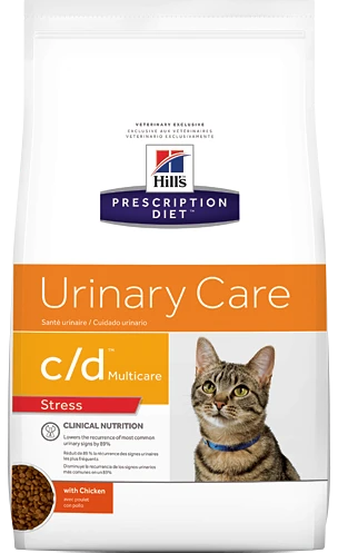Hill’s Prescription Diet c/d Feline Urinary Stress Poulet est cliniquement prouvé pour réduire la récurrence des symptômes de la CIF et contient des ingrédients pour contrôler le stress, qui est un facteur de risque connu pour la CIF (Cystite Idiopathique Féline). Des ingrédients tels que le tryptophane et l’hydrolysat de protéines de lait contribuent à réduire le stress.
