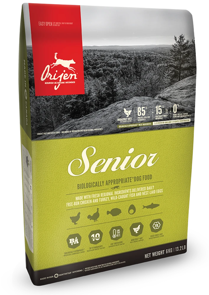 Fabriqué exclusivement dans notre usine primée au Canada (État de l’Alberta), l’aliment ORIJEN SENIOR gardera votre chien en bonne santé, fort et vital.
