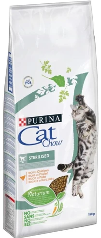 PURINA® CAT CHOW® Adult Sterilised est riche en poulet et contient tous les nutriments essentiels à la bonne santé de votre chat, notamment de la vitamine E pour soutenir ses défenses naturelles et des vitamines du groupe B pour aider son organisme à utiliser efficacement les nutriments. Il contient également NaturiumTM, une combinaison spécifique de fibres d’origine naturelle, prouvée pour soutenir une digestion saine.