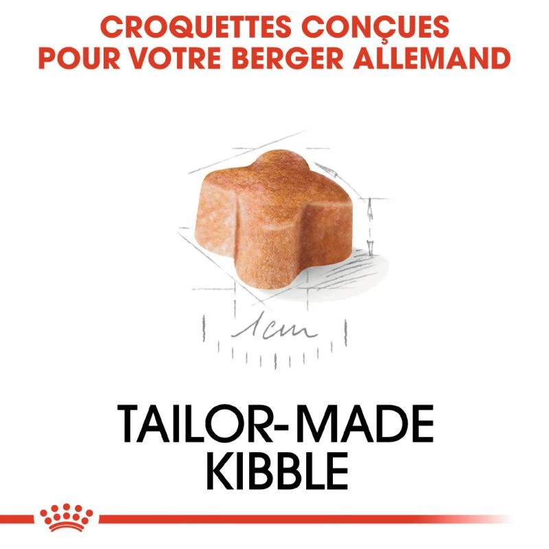La forme, la taille et la texture des croquettes ont été adaptées à la structure corporelle des chiots bergers allemands.