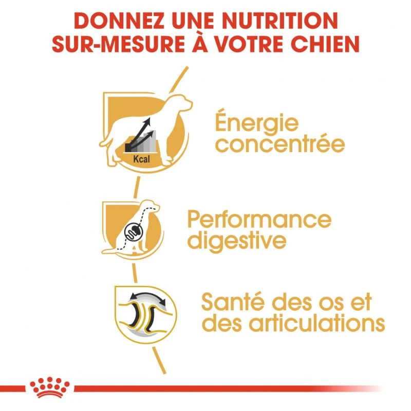 La formulation spéciale favorise le soutien de la santé des os et des articulations et le maintien d’un poids corporel sain.