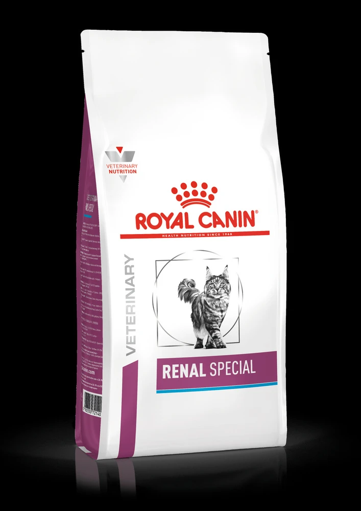 Aliment diététique complet pour chats adultes destiné à soutenir la fonction rénale en cas d’insuffisance rénale chronique, grâce à la teneur limitée en phosphore et à l’utilisation de protéines de haute qualité. Les aliments secs RENAL SPECIAL préviennent également la formation de calculs d’oxalate, grâce à leur faible teneur en calcium et en vitamine D et à leurs propriétés alcalinisantes pour l’urine.