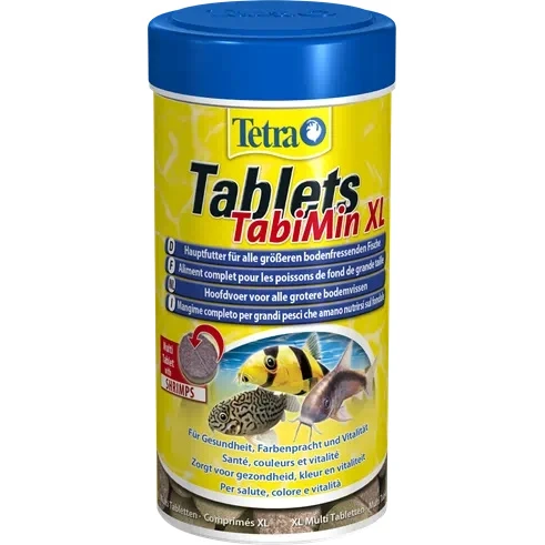 Ne donnez pas plus de nourriture à vos poissons, qu’ils ne peuvent en absorber en 30 minutes environ. Application prévue dans des bacs de grande taille. Utilisez les comprimés dans des bacs d’ensemble avec TetraMin Flakes/Granules ou TetraPro. Pour une alimentation diversifiée, n’hésitez pas à donner à vos poissons un aliment naturel comme TetraNatura 2 à 3 fois par semaine.
