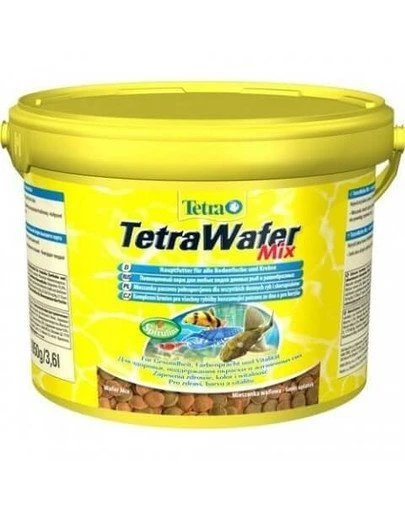 Tetra TetraWafer Mix est un aliment de base Ă plusieurs ingrĂ©dients sous forme de gaufrettes (disques durcis) pour les poissons de fond et les crustacĂ©s carnivores et herbivores. Il s’agit d’une combinaison de deux types de disques, vert et brun. Les gaufrettes vertes, auxquelles on a ajoutĂ© l’algue nutritive Spirulina, sont destinĂ©es aux poissons herbivores vivant sur le fond, tandis que les gaufrettes brunes sont destinĂ©es aux poissons carnivores vivant sur le fond. Cette nourriture est idĂ©ale pour les poissons carnivores vivant sur le fond (cyprinidĂ©s, bobia, etc.), les poissons herbivores (mangeurs d’algues) et les petits crustacĂ©s (crabes, crevettes, etc.).