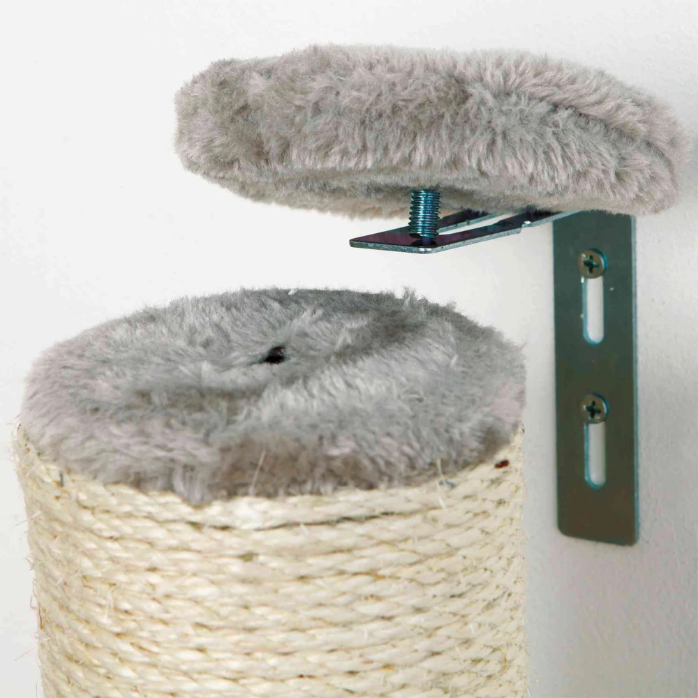 Un griffoir pour chat fixé au mur, enveloppé de sisal naturel avec des extrémités en peluche. Peut être utilisé en complément des grattoirs existants. Tous les éléments du griffoir fixé au mur peuvent être combinés de différentes manières et ainsi créer des chemins ou des murs d’escalade, combinant l’aventure avec un lieu de repos pour vos chats. Ainsi, les chats peuvent prendre de la hauteur ou profiter de l’escalade.