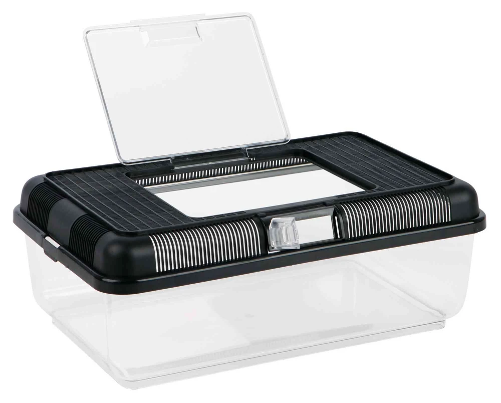 Pour transporter, élever et nourrir les reptiles et les amphibiens. Idéal pour stocker des aliments vivants et comme zone de quarantaine. Avec poignée et trou d’alimentation dans le couvercle