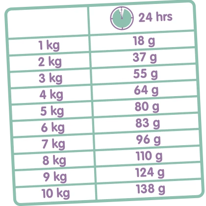 Si vous nourrissez votre animal pour la première fois, mélangez-le à sa nourriture existante, en augmentant progressivement la proportion de nouvelle nourriture au cours des 3 à 5 premiers jours. Veillez à ce que votre chat ait constamment accès à de l’eau fraîche et potable.