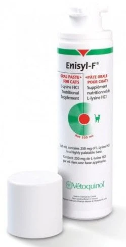 Vétoquinol Care Enisyl-F pour chat est une pâte savoureuse au bon goût de poisson contribuant à renforcer le système immunitaire du chat et du chaton. La plupart des chats ont à un moment ou à un autre contracté le virus FHV-1, également connu sous le nom de grippe féline. Les chatons peuvent facilement être infectés par leur mère. Ce supplément nutritionnel contient, entre autres, l’acide aminé essentiel L-Lysine qui permet à votre petit félin d’être plus résistant et de se protéger contre cette désagréable maladie. La pâte est conditionnée dans un flacon à pompe pratique.